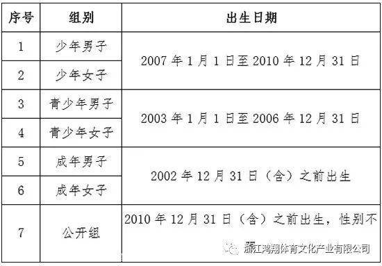 (2)公开组的运动员须满足年龄要求(2010.12.31以前出生),以个人或单位名义报名均可。