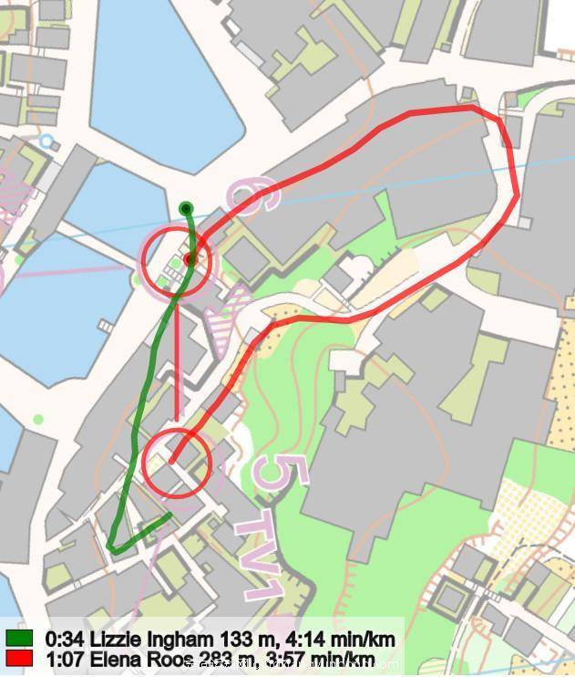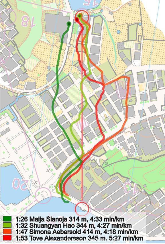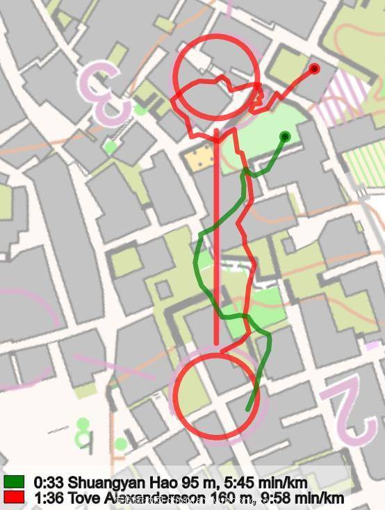 在定向女子组的比赛中,每个人都在谈论本赛季托夫·亚历山大森将赢得所有的世界杯比赛——但最终亚历山大森在第三控制区犯了一个大错误后都没有接近胜利。gps追踪并不能告诉我们到底发生了什么,但亚历山大松在小巷子里迷了路,在比赛开始的时候,她失去了在一个赛季中赢得所有世界杯冠军的机会: