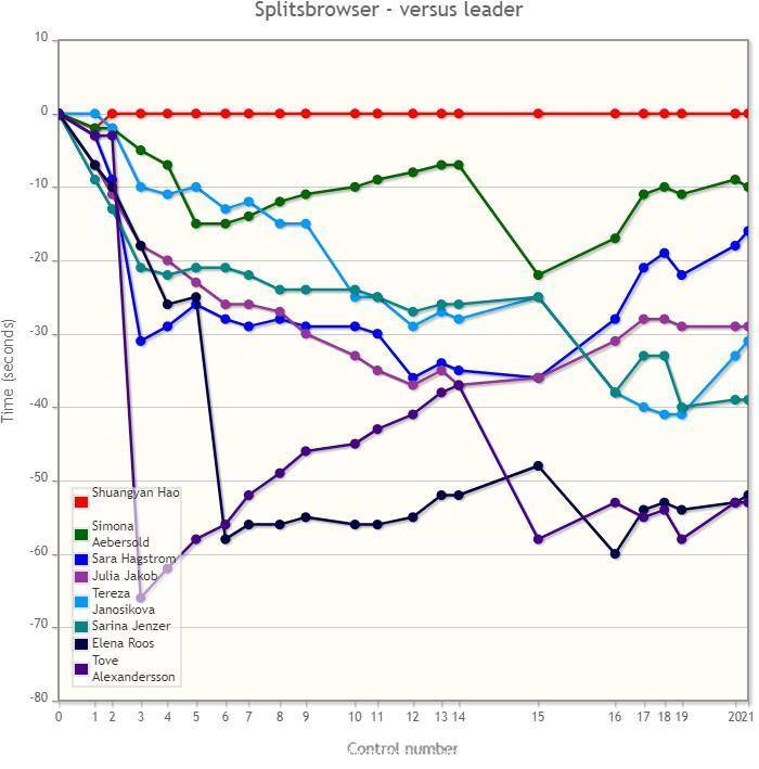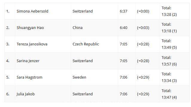 观察图形分裂时期,我们看到Alexandersson可能想寻找高风险线路,试图找回失去的时间——但仍然让她失去了太多时间。Simona Aebersold也犯了类似的错误,而这正是郝双燕决定战胜Aebersold的地方。