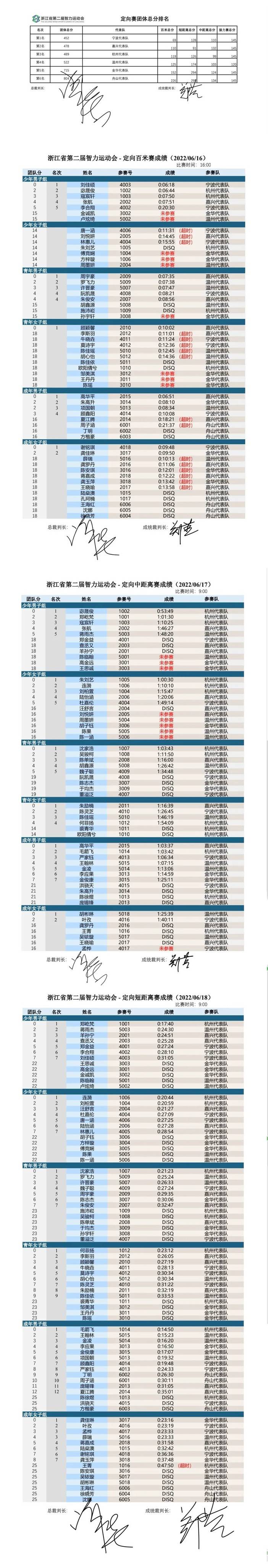 经过三天的激烈角逐,宁波、嘉兴及杭州三市分获团体总分前三名。各单项成绩见附件。