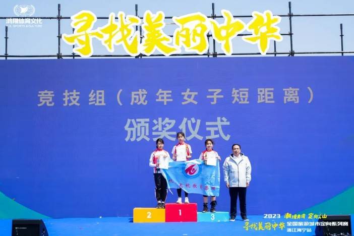海宁市无线电和定向运动协会会长、浙江鸿翔体育文化产业有限公司总经理 朱建杰为竞技组(成年女子短距离)颁奖