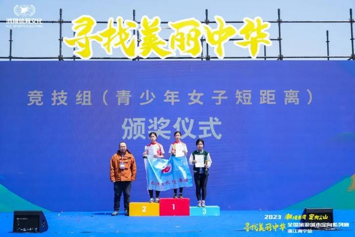 海宁市无线电和定向运动协会秘书长、浙江鸿翔体育文化产业有限公司副总经理 高稀伦为竞技组(青少年女子短距离)颁奖