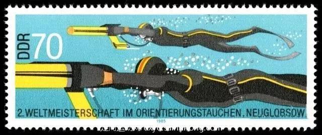 1985年8月在德国Neuglobsow举行的第二届水下定向越野世界锦标赛纪念邮票