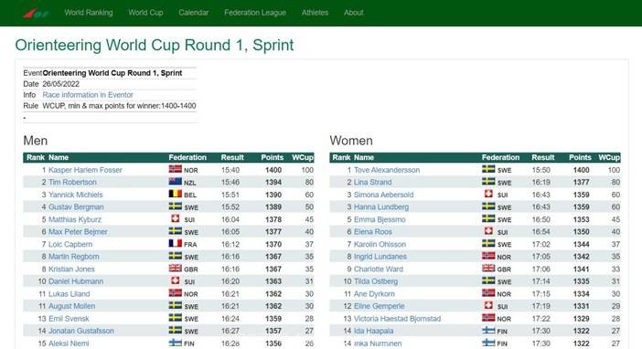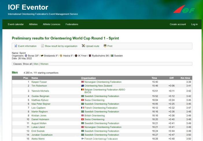 2022定向世界杯第一站(瑞典Boras)短距离比赛结束,本轮世界杯包含短距离个人赛、短距离淘汰赛(KO)和短距离接力赛。本轮世界杯是今年三轮世界杯的第一轮,也是唯一的一轮进行短距离比赛的世界杯。第二轮比赛将在8月份上旬的爱沙尼亚欧锦赛上同步进行,包含三场森林定向。最后一轮比赛则将在10月上旬移师瑞士达沃斯。