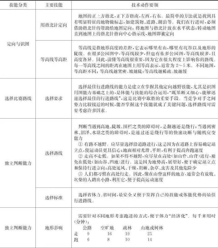 (4)地图:地图是定向越野最重要的器材,它的质量的好坏直接影响到运动员的成绩和关系到比赛是否公正,因此,《国际定向运动联合会》专门为国际间的定向越野比赛制定了《国际定向运动图制图规范》。