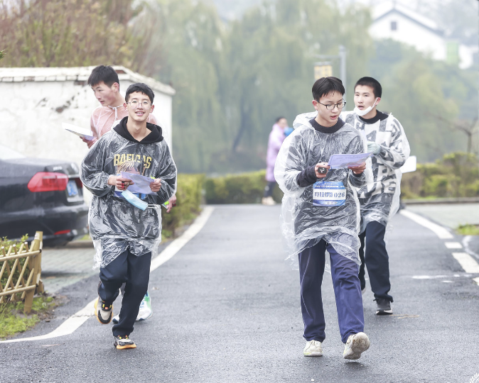 定向运动新潮时尚、益脑益心,融合体力与智力,十分适合学生参与体验。且相比在校内的演练,校外的雨中实战显得更有意思,这群年仅十三四岁的小选手在湿漉漉的道路上进行激烈比拼,表现出极高的专业素养。